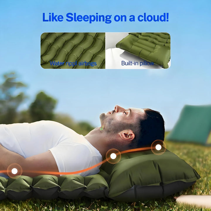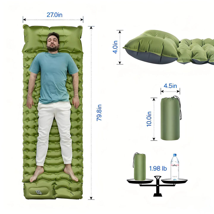 Camping Sleeping Pad with Pillow Built-in Foot Pump, Camping Essentials for Backpacking, Hiking
